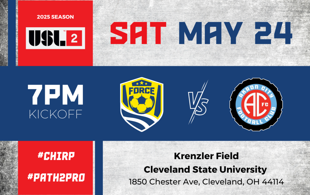Cleveland Force SC vs Akron City FC - Home USL League 2 Game - May 24, 2025 @ 7pm